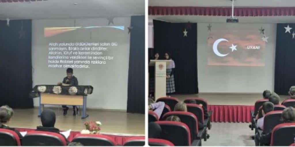 Programda, öğrencilerimiz kahraman gazilerimizin vatan sevgisini ve fedakârlıklarını anlatan şiirler okudu, konuşmalar yaptı. Milletimizin birlik ve beraberliğini pekiştiren bu özel günlerde; geçmişten aldığımız güçle geleceğe daha umutla bakmanın önemi vurgulandı.