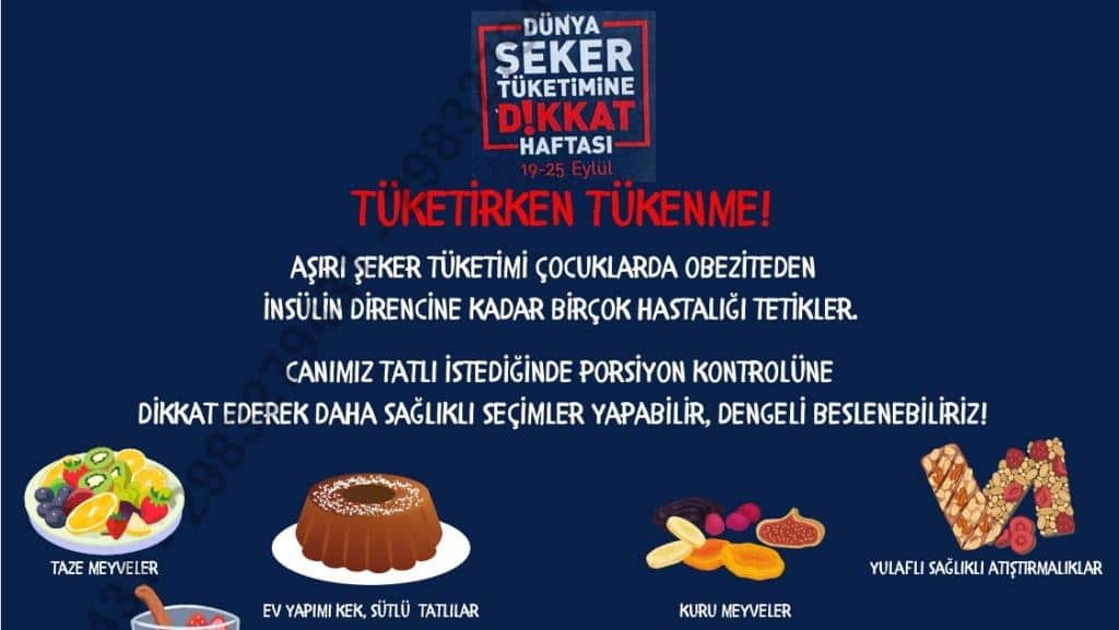 19-25 Eylül tarihleri arasında, toplumda sağlıklı beslenme konusunda farkındalık oluşturmak amacıyla Dünya Şeker Tüketimine Dikkat Haftası olarak kutlanmaktadır.