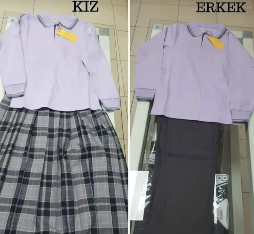 KIZ ÖĞRENCİLER İÇİN KIYAFET: ETEK, LİLA TİŞÖRT, FERMUARLI KAPUŞONLU SİYAH HIRKA, SİYAH EŞARP (ŞAL), SİYAH ÇORAP